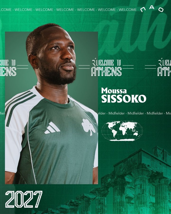 36岁的法国中场穆萨·西索科效力过图卢兹、纽卡斯尔、热刺、沃特福德和南特等球队,2024年他从南特自由转会回归沃特福德,并于今年冬窗转投帕纳辛纳科斯。